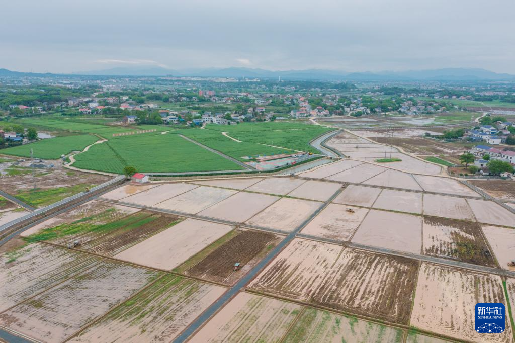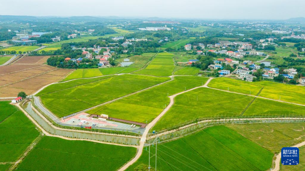 這是2024年6月19日在瀏陽(yáng)市永安鎮(zhèn)豐裕村拍攝的稻田(無人機(jī)照片)。新華社發(fā)