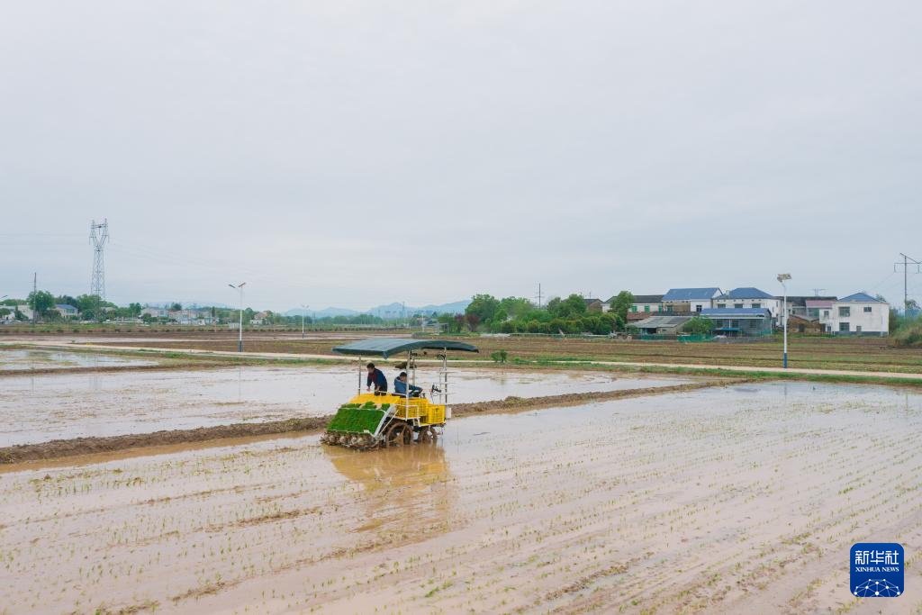 2024年6月19日,在瀏陽(yáng)市永安鎮(zhèn)豐裕村改良后的耕地上,村民操作機(jī)械插秧。新華社發(fā)