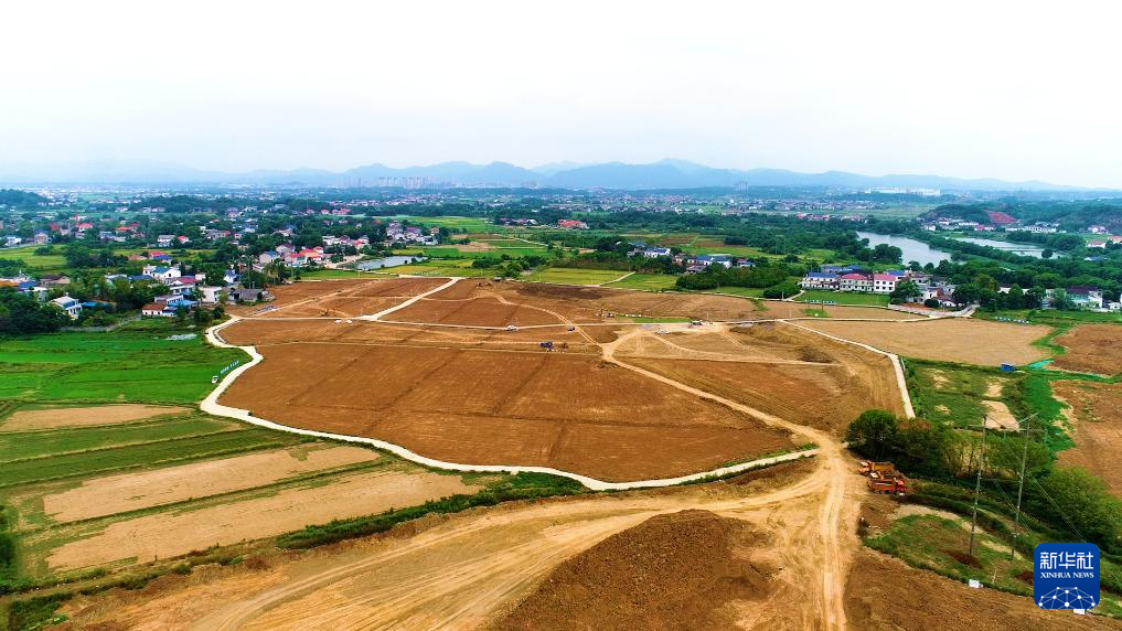 這是2022年8月31日拍攝的瀏陽(yáng)市永安鎮(zhèn)豐裕村嚴(yán)格管控區(qū)地塊覆土作業(yè)現(xiàn)場(chǎng)(無人機(jī)照片)。新華社發(fā)(鄒禮卿 攝)