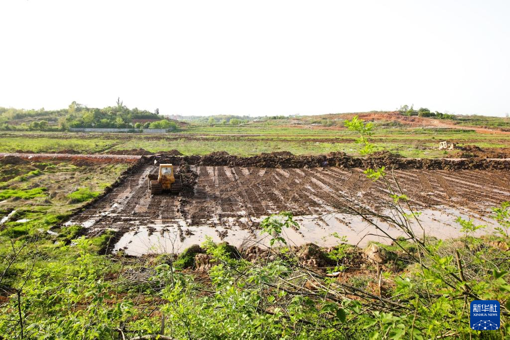 2022年4月7日,長(zhǎng)沙機(jī)場(chǎng)改擴(kuò)建項(xiàng)目被占耕地在進(jìn)行耕作層剝離作業(yè)。新華社發(fā)(鄒禮卿 攝)