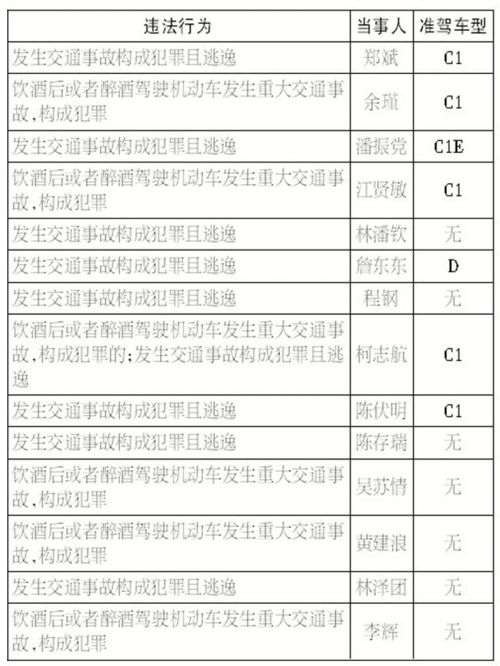 14名終身禁駕人員中,發(fā)生交通事故構成犯罪且逃逸的有9人次,因飲酒后或者醉酒駕駛機動車發(fā)生重大交通事故,構成犯罪的有6人次,其中1人涉及兩個終身禁駕行為(具體名單詳見表一)。值得一提的是,14人中有7人原先就未取得機動車駕駛證。