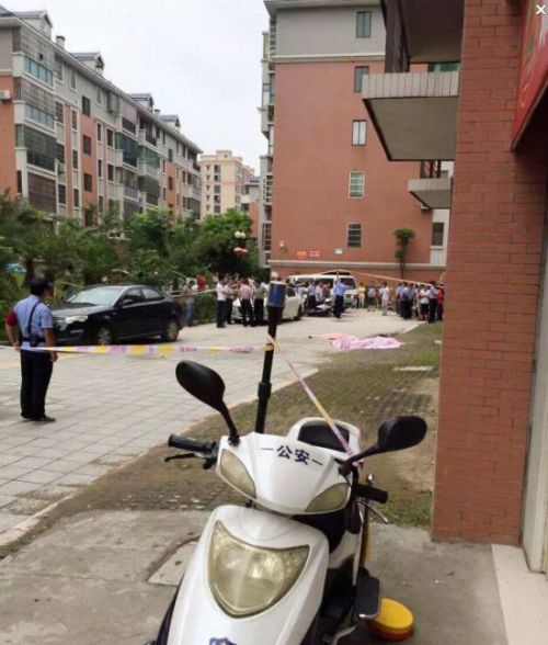 跳樓事件現(xiàn)場在一居民小區(qū)內(nèi)。