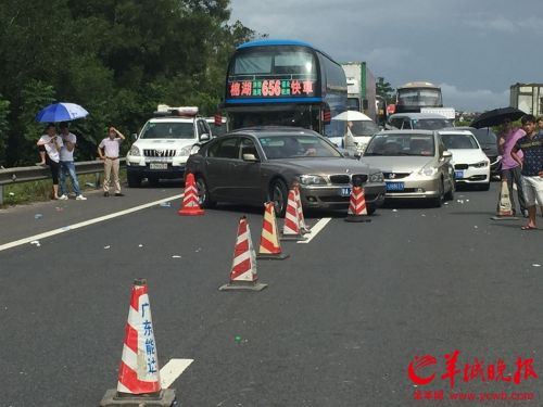 中午12點(diǎn)半,羊城晚報(bào)記者在塞車路段看到,由于事發(fā)路段雙向交通中斷,深汕高速內(nèi)湖路段排起了15公里長龍,客車、私家車、貨車鱗次櫛比,不少司機(jī)都只能在路邊結(jié)對等待,有些私家車車主甚至往事發(fā)現(xiàn)場走去。“我從11點(diǎn)就到這里了,等了1個半小時還沒通車,不知道發(fā)生了什么,反正在車?yán)镆彩谴?,去看看到底發(fā)生了什么。”私家車車主黃先生對記者表示。
