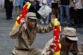 2015-07-17 16:11 來源:四川在線今年是世界反法西斯戰(zhàn)爭暨中國抗日戰(zhàn)爭勝利70周年。為表紀(jì)念,近日杭州宋城景區(qū)現(xiàn)潑水打鬼子活動,吸引了不少游客加入。 7月16日,杭州市宋城景區(qū)舉行潑水打...