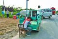 車禍現(xiàn)場(chǎng)少年安坐在三輪車旁,以三輪車的車廂為桌子,專心做起了作業(yè)。