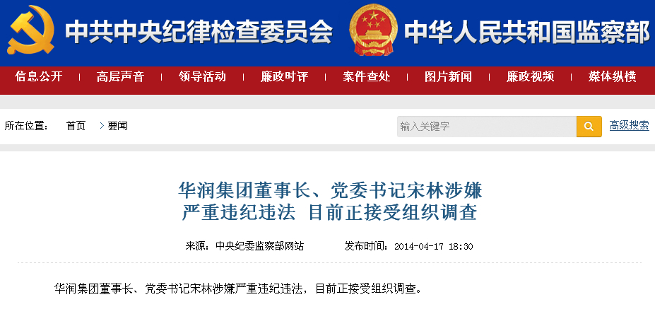 4月17日消息,據(jù)中央紀(jì)委監(jiān)察部網(wǎng)站消息,華潤集團(tuán)董事長、黨委書記宋林涉嫌嚴(yán)重違紀(jì)違法,目前正接受組織調(diào)查。