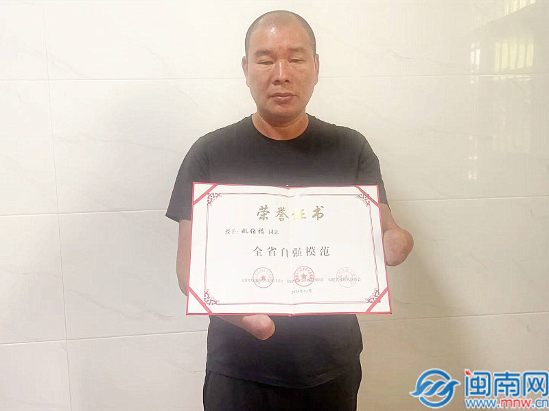 閩南網(wǎng)12月9日訊(通訊員 鄭曉梅 沈娟 閩南網(wǎng)記者 張恩培)近日,福建省自強模范名單公布,一個熟悉的名字再次映入公眾視野——姚伯福。這位失去雙手的農(nóng)民,家住長泰區(qū)武安鎮(zhèn)珠坂村,他曾在2021年全國殘運會上為福建奪得首金,如今又因在逆境中迸發(fā)的非凡生命力而獲得表彰。