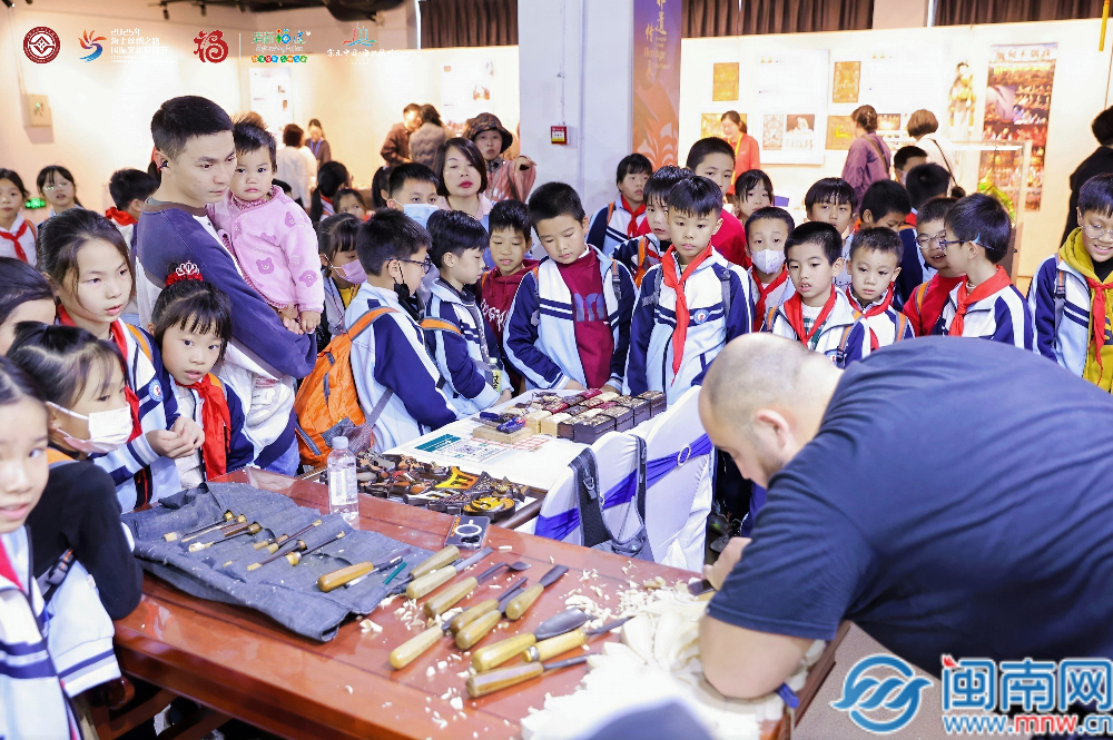 小朋友們圍觀國(guó)外非遺項(xiàng)目展示(主辦方供圖)