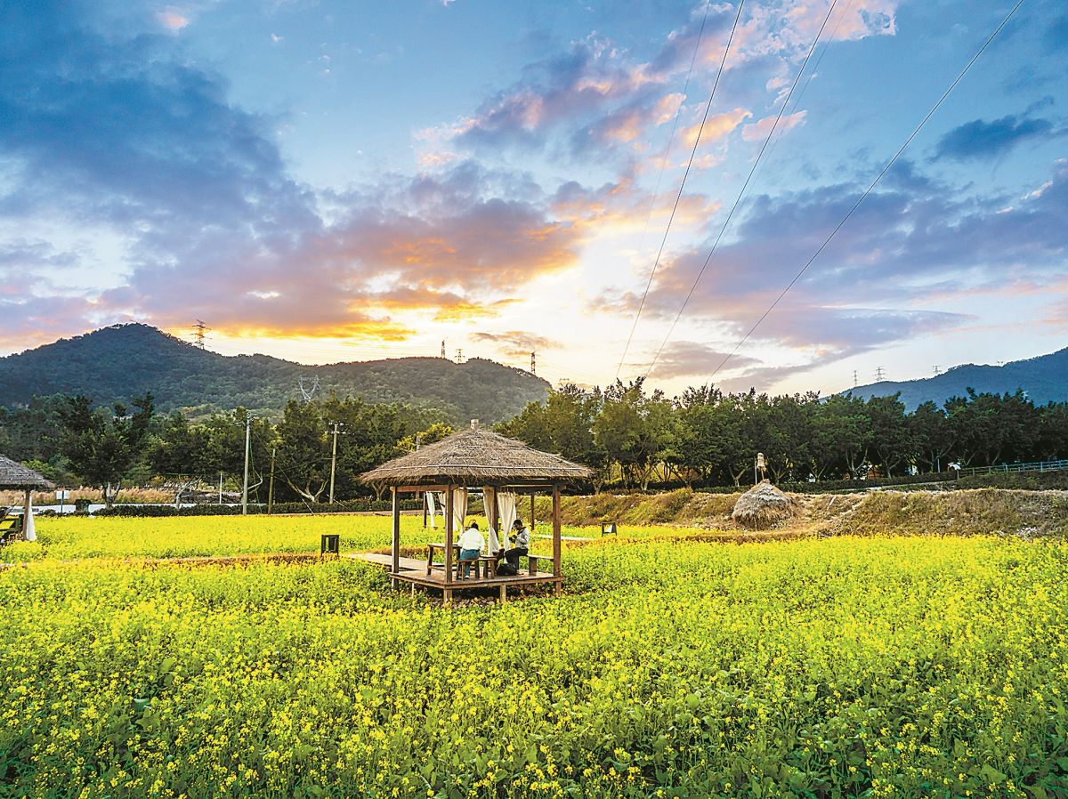 初冬時(shí)節(jié),在位于廈門市海滄區(qū)天竺山西門的“知稻稻田咖啡”農(nóng)耕研學(xué)基地,大片金黃油菜花海開始綻放,在冬日里形成了一幅清新的田園畫卷。