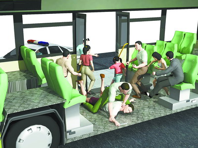 這時(shí),朱馬飛看見(jiàn)這名男子將手伸進(jìn)小女孩衣服內(nèi),他立即起身大吼一聲:“馬上放手!”“關(guān)你什么事?”這名男子并不示弱,一邊喊著一邊起身從口袋里掏出一把長(zhǎng)約20厘米的彈簧刀,在朱馬飛面前不停晃動(dòng)。周?chē)丝鸵?jiàn)到亮閃閃的刀子,頓時(shí)慌亂起來(lái),紛紛向后躲閃。由于車(chē)內(nèi)人較多,離男子最近的乘客不到一米,公交車(chē)內(nèi)充滿(mǎn)了恐慌。