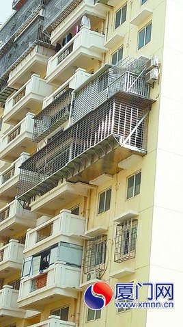 伸手向天空要空間,除了樓頂?shù)倪`法搭蓋外,在湖里區(qū)龍湖花園又出現(xiàn)了新的版本:敲掉臥室一面墻后,利用放空調(diào)外機(jī)的臺(tái)階搭起一個(gè)面積為3-8平方米不等的空間,或作陽臺(tái)或作飄窗。小區(qū)物業(yè)管理人員說,這種野蠻裝修的方式一露頭就屢禁不絕,現(xiàn)在已經(jīng)成為小區(qū)的一大特色。