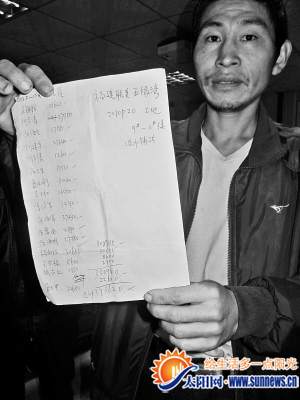 一名老鄉(xiāng)向記者出示他們被拖欠的工資清單。記者劉平攝