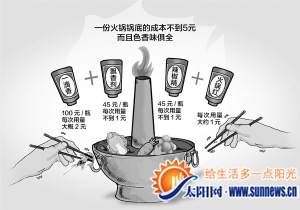 大骨熬制,秘制鍋底,上等食材……這是許多火鍋店打出的誘人廣告語,但這些火鍋是否真的如廣告所說?為此,晨報記者連日對廈門火鍋業(yè)市場進行暗訪,發(fā)現(xiàn)有店家公開售賣辣椒精、火鍋紅、一滴香和飄香劑,并聲稱廈門火鍋沒有一家不加這些添加劑。同時,據(jù)記者測算,大概只要三五元的成本,就能做成一份大骨鴛鴦鍋。