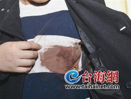 小李也被刺了一刀,外套救了他一命,刀刃刺穿外套后,在他的左胸口劃了一道四五厘米長、2厘米左右深的傷口,最后縫了8針。
