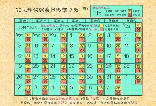 2014年鐵路春運購票日歷(圖表1)