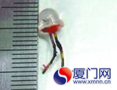 呼吸中心主任柯明耀決定采取無(wú)痛支氣管鏡檢查,還真在右肺支氣管腔內(nèi)發(fā)現(xiàn)了閃閃發(fā)光的東西,但是用異物鉗一抓就滑走了,費(fèi)了九牛二虎之力,試用多種方法后,終于把它取了出來(lái),原來(lái)是個(gè)連著線(xiàn)路的小燈泡,足有4厘米長(zhǎng)。取出燈泡后,小軍的咳嗽、發(fā)燒癥狀都消失了,又能和小伙伴玩耍了。