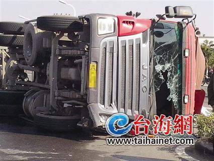 昨日下午1點(diǎn)左右,翔安西路同美村路段,一輛集裝箱車與一輛貨車相撞后側(cè)翻,司機(jī)被卡在駕駛室,附近群眾砸破擋風(fēng)玻璃幫司機(jī)脫困。