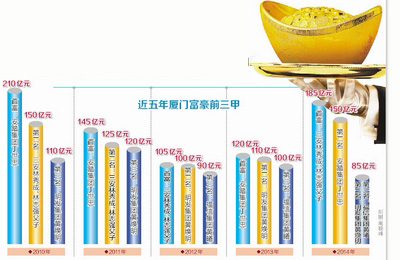 更早前的富豪榜單上,廈門首富曾經(jīng)由福信集團(tuán)黃曦、銀鷺集團(tuán)陳清淵家族、恒興集團(tuán)的柯希平等擔(dān)任過。